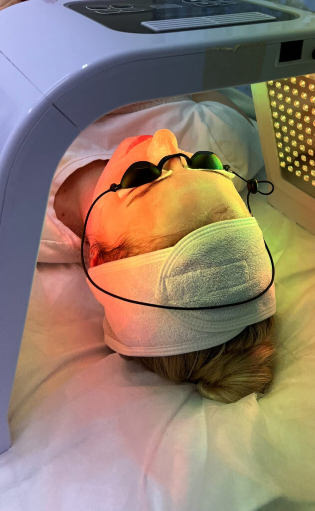 Ošetření probíhá v klidném režimu, bez jakéhokoli narušení pokožky. Po důkladném odlíčení a přípravě pleti je zvolena vhodná světelná frekvence. Klientka během terapie relaxuje, zatímco světlo působí cíleně na daný problém.